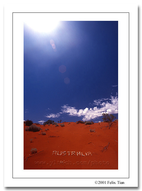 十月的澳洲正是雨季,今天是我两周内见到的第一个晴天。从Alice小镇开出来,经过五个多小时的无聊旅程,终于见到了地平线上Ayersrock的身影。看看表,时间还够,我决定开到沙子上玩玩,试试这辆巡洋舰的性能。