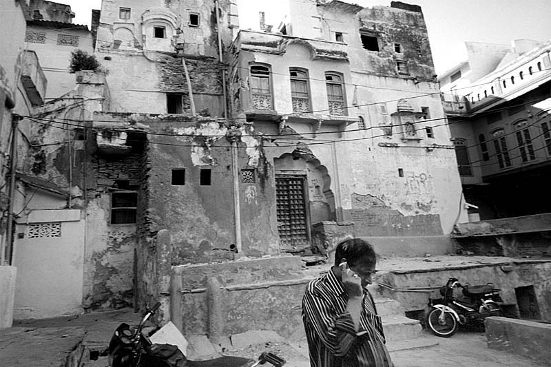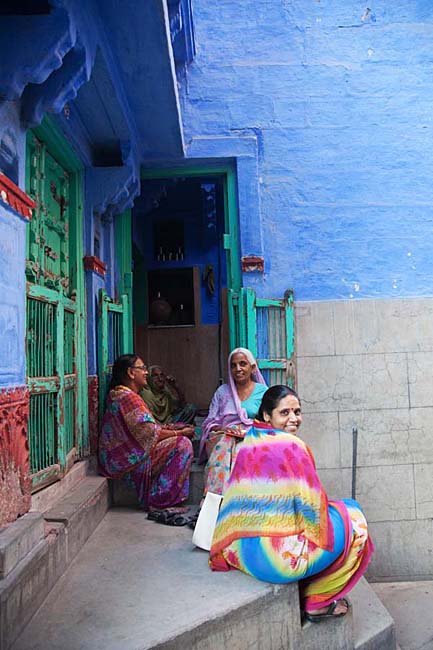 城市呈放射状围绕着昔日的邦主城堡而建,房屋间或漆成悦目的淡蓝色。在昔日种姓制度森严的时候,这蓝色是掌管祭祀的最高种姓婆罗门的专用颜色,因此,越接近王宫,蓝色的房屋越密集。