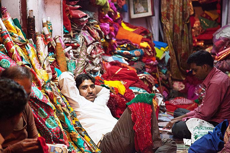 店铺里明亮的灯光映在金色的首饰上、红色的布匹上、各色的香料上,放出七彩光芒,直映得夜色斑斓,拌上鼎沸的人声,活生生的一片浮世风景。