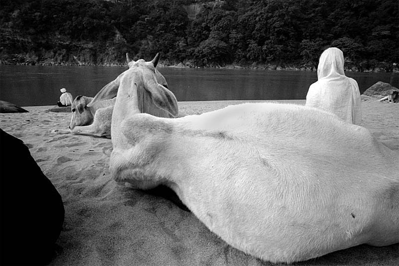 刚出门,被一头牛迎头撞上,低头一看,身上被蹭了不少牛粪,稀稀的、黄黄的,散发着刚出体的芳香,粘在衣裤上、相机上、相机包上分外耀眼。印度的牛都是神牛,难道神牛是从头上排泄不成?