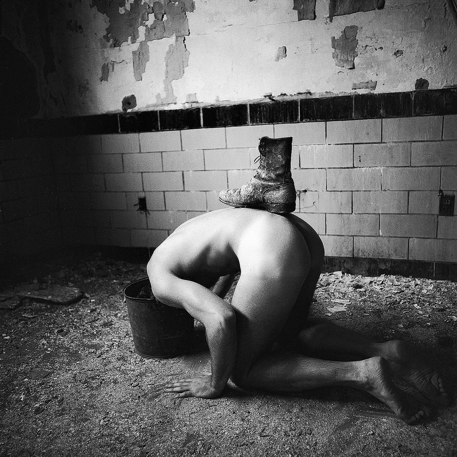 问:你在另一个领域也算是先驱,那就是男性人体摄影,你使用了很多暗示,象征,符号的手法来展示男性更加难以窥视的内心世界,可惜现在已经很难看到这批片子了。