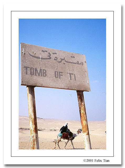 这几座金字塔相距甚远,在一望无际的沙漠里遥相呼应,规模不如胡夫三塔,但也颇为壮观。我买好票,喘歇了几次才登上位于四,五层楼高度的入口,顺着仅容一人猫腰通过的石道爬了几十米,进入一个墓室。