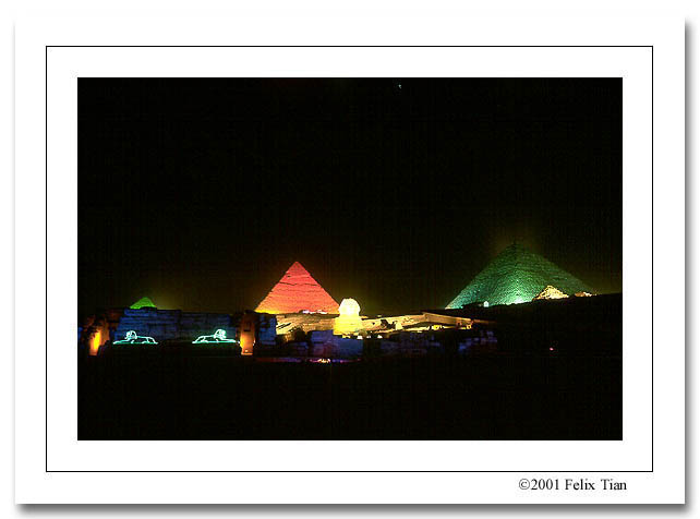 分手之后,我看了一个以金字塔为背景的激光表演,一流的声光电效果,煞是壮观。