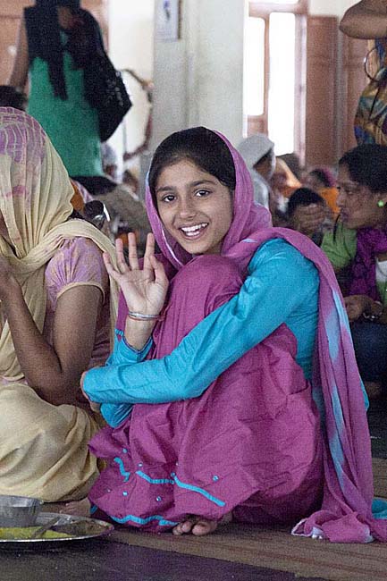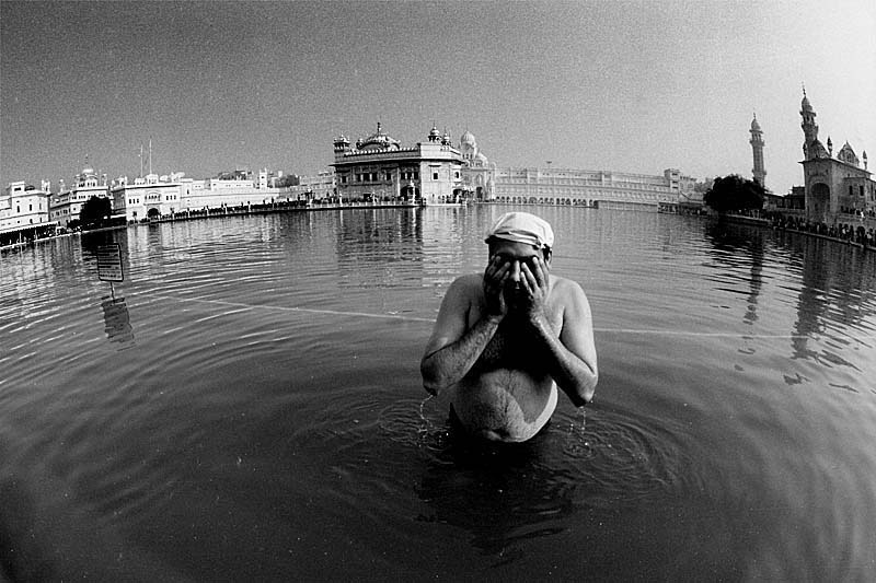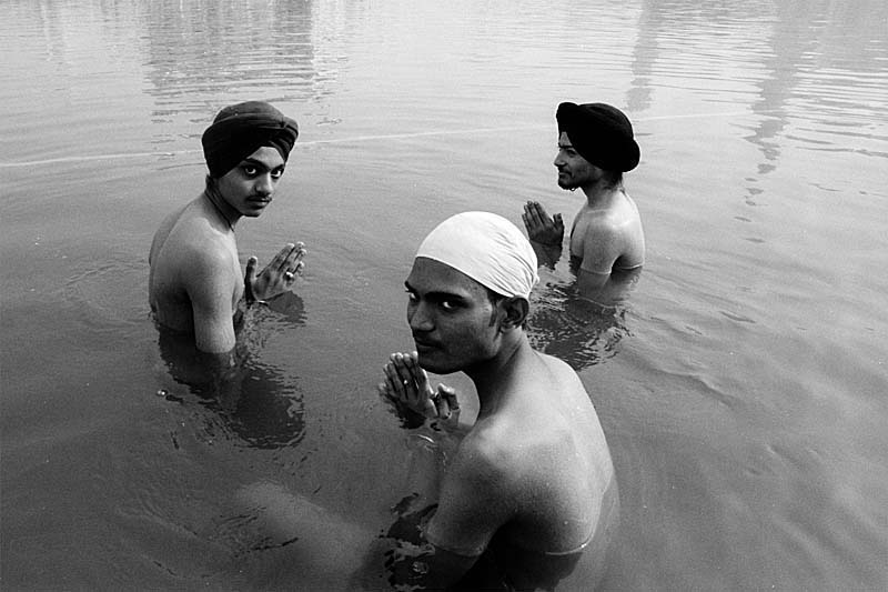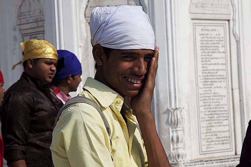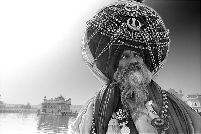 这是一个难忘的上午,在这座印度北方金庙的艳阳天里,我遇到了出道以来对摄影师最友善的人群。与世界其他地方不同,这里的男女老少面对镜头不但毫无戒心,而且是身心开放地展现自己的好客和善意。每当有人发现自己正面对我的镜头,都会欣欣然并且毫不做作地等着我按快门。甚至有不少人主动走过来,要求给他们留个影,拍完后给他们看看数码影像,然后就会非常高兴地双手合十表示感谢,随即离去。