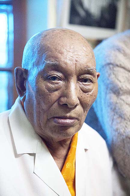 轮到我,被叫进房间,老人端坐,旁边三个助手在穿梭。老御医用大眼珠子盯了我好一会儿,大概是看我披挂着两台相机,嬉皮笑脸、东张西望的样子像是来卧底的。老人用藏语低声嘟囔了一句,旁边干练有礼的小伙子同声传译,虽然他翻出来的是相当标准的英文,可在我听来老人的话像是古代太监在殿堂上的宣旨: