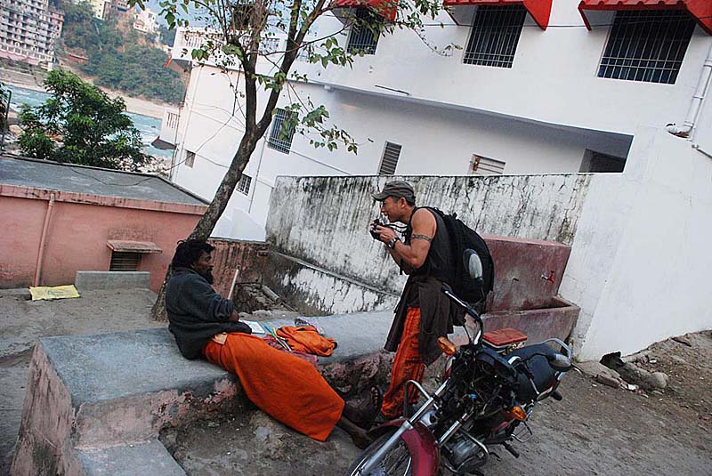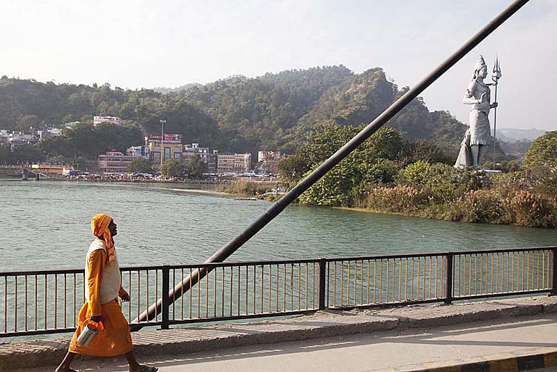 这是一个拥抱着恒河、座落在山上的小镇,由两座铁索桥连接两岸。镇子的北头有一座据称是印度最高的庙,恒河两岸星罗棋布地布满客栈和道场,据说这小小的镇子上有两百多家道场,包括了世界上所有的瑜伽流派,世外高手奇多。