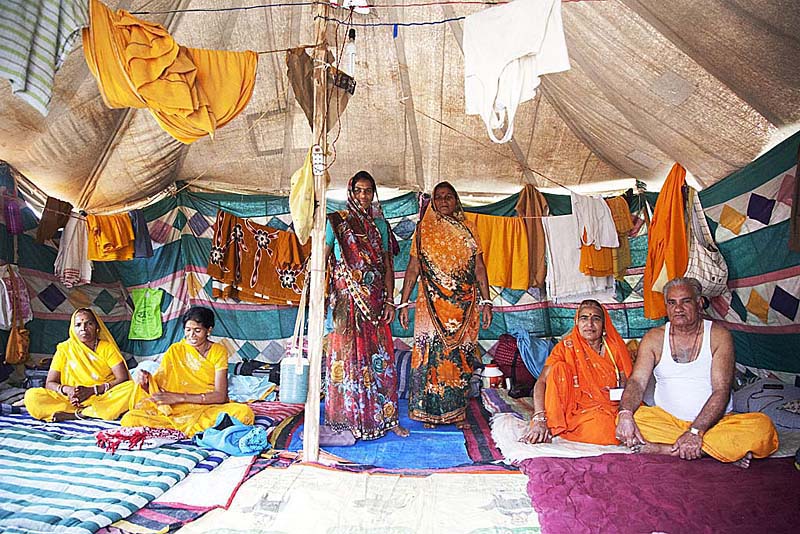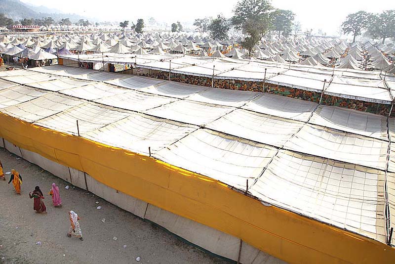 我自以为每年去沙漠里看到的五万人帐篷连营已经非常壮观,可是此时,当我站在恒河之畔、高岗之上,面对着眼前金灿灿的逆光里一望无际的帐篷阵营,目瞪口呆,心旌荡漾。