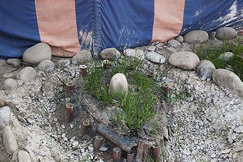大叔说着指着一顶帐篷门旁竖着的一块白色的椭圆形鹅卵石。那石头被一圈刚发芽的小草围着。我知道它的含义,它叫林伽,象征着湿婆的生殖器。