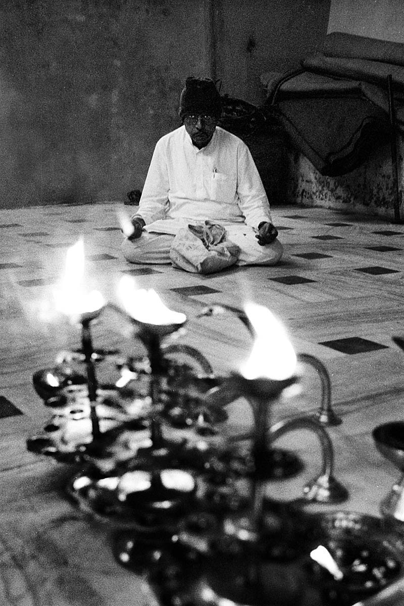 河边,各路宗师大仙高坐台上,遥对滔滔河水和立在水中的湿婆雕像,面色凝重;下面围坐着一群小僧侣,短发紫袍,一脸童真。各色的长袍、各色的包头、一色的空灵交织着在篝火中跳跃,使整个场面看起来像是把古罗马的长老院搬到了恒河畔。