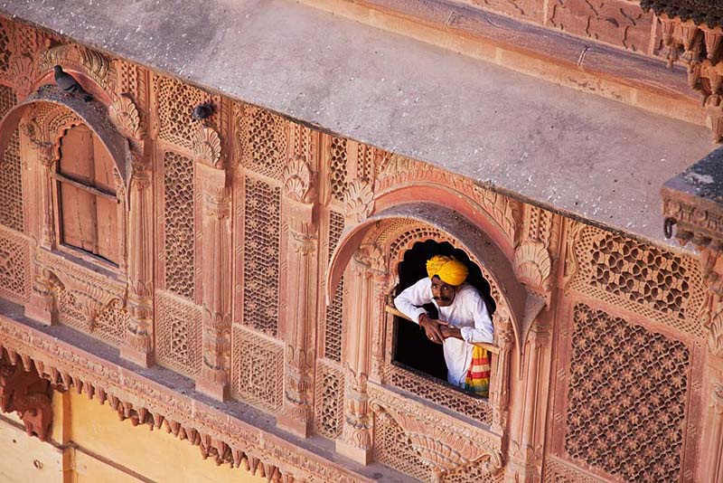 城市呈放射状围绕着昔日的邦主城堡而建,房屋间或漆成悦目的淡蓝色。在昔日种姓制度森严的时候,这蓝色是掌管祭祀的最高种姓婆罗门的专用颜色,因此,越接近王宫,蓝色的房屋越密集。