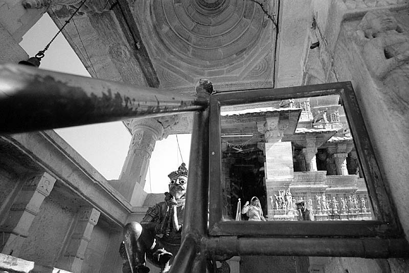 后面的观光之路俨然变成了腾云驾雾之旅,幽灵似地在昔日的皇宫里飘来飘去。依稀看见一个房间里摆了一付奇怪的轿子--那属于一个侏儒国王;一间房墙上挂了一副画,画里一人挥刀把前面一个骑兵连人带马劈成两爿,劈开的人体内部结构鲜红如生--那是印度历史上一个神勇的皇帝。