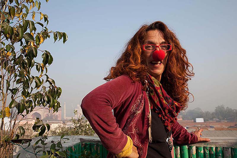 对面的铺位属于一对老嬉皮,女的来自西班牙,环佩长裙,快乐散漫,她叫X,举手投足颇具吉普赛人风范;男的叫I,来自澳大利亚,花白的络腮胡子浓密蓬勃,后脑上的银发梳成一个冲天辫,身着白色印度半长袍子,松松垮垮的灯笼裤,戴副金丝眼镜,看上去活像流落风尘的印度版“马克思”,既有几分哲气,又不失仙风道骨。
