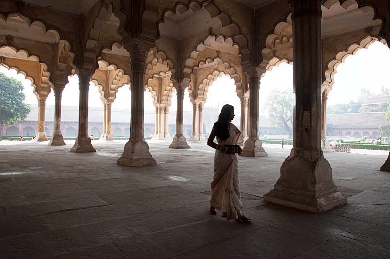 阿格拉堡同样为红色沙石垒成,庭院幽深,重重叠叠,不失为出色的古建筑群。但人们蜂拥去看的却都是那个老国王遥望泰姬陵的窗口,看来情种人人爱,更何况人家的故事是用生命写的。